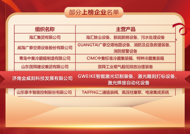山東是全國唯一擁有41個工業大類的省份,而山東人也以創新、夯實的工匠精神,打造越來越多的好品。金威刻激光深深扎根于這片工業沃土,持續強化自身品牌創新能力,以激光切割裝備、激光雕刻打標設備、焊接自動化設備、柔性生產作為創新發力點,在齊魯大地綻放耀眼光芒。